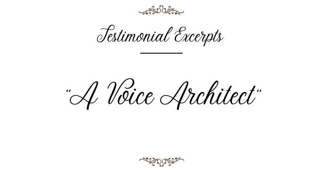I can also help with alignment of the Speaking Voice and misuse of the Belt Register, Laryngitis, Hoarseness, Breathy Tone, Loss of Range and Strength and The Dysfunctional Flat Tongue Method.