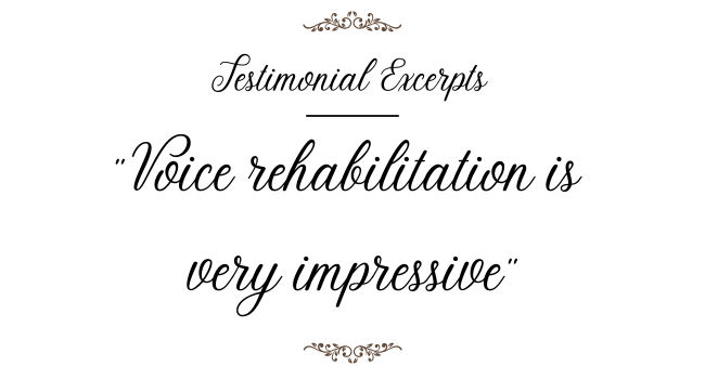 I have a special interest in voice disorders and vocal problems and I also take referrals for Voice Rehabilitation from ENT surgeons. My experience includes Post Thyroid Surgery, Tremolo, Hernia, Nodules, Cysts, Scarring Inflammation and Bowing of the Vocal Fold, Strain of the Larynx and Throat muscles